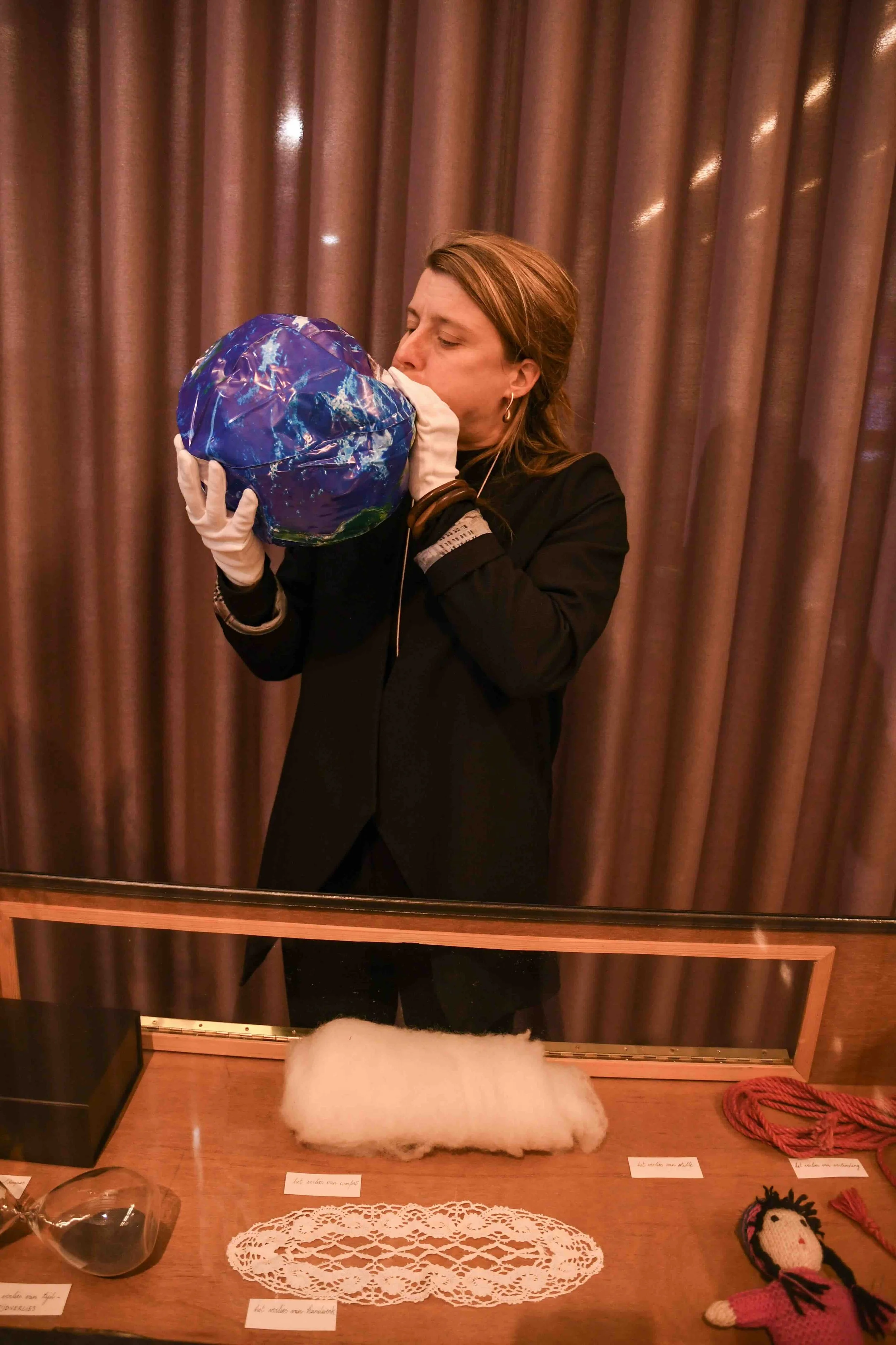 A group of participants are invited to sit together in a cirkel in which a story without words unfolds through the passing on of objects, materials, textures that triggers memories, associations and awareness. What emerges is a collective ritual in which the objects are activated from a status quo to a place of honour and respect. By traveling through the hands of a divers group of people they become common goods to be cared for by all. The performance emerges from the (playful) tension between performer, participants, and the context in which it takes place, creating space for grief, gratitude and togetherness.